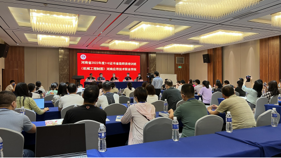 2022年7月25日上午,由河南省教育厅主办、河南应用技术职业学院pg娱乐电子游戏官网入口承办的“机械工程制图1+X”技能证书省级师资培训(线下)班在郑州市杜康大酒店正式开班。我校副校长陈君丽,广州中望龙腾软件股份有限公司大区经理郑亚伦,教务处处长赵扬,pg娱乐电子游戏官网入口院长黄双成,教务处副处长杨敏等出席开班仪式,仪式由黄双成院长主持。