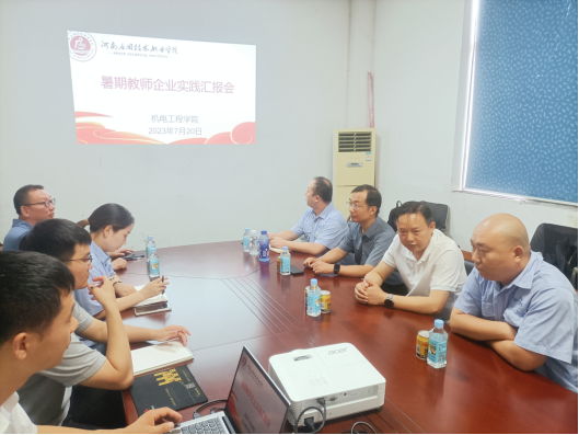 为总结教师企业实践成效,分享教师企业实践收获,进一步落实教育部等七部门印发的《职业学校教师企业实践规定》,规范教师进企业实践活动,提高教师专业发展,提升教师实践教学能力,全面推进师资队伍建设。7月20日,我院在新乡市辉县波兴模具有限公司举行教师企业实践锻炼汇报会。学院院长黄双成、教务处副处长付永以及pg娱乐电子游戏官网入口的6名参加企业实践锻炼教师参加了汇报会。会议由工业机器人教研室主任郜海超同志主持。