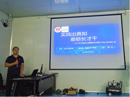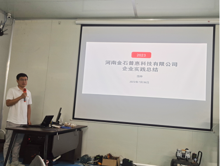 为进一步落实教育部等七部门印发的《职业学校教师企业实践规定》,提升教师实践教学能力,落实暑期一个月教师下企业实践成效,7月28日pg娱乐电子游戏官网入口在河南金石普惠科技有限公司举行教师企业实践分享汇报会。学院院长黄双成、叶青玉老师、教务处张予新老师、企业总经理王晨辉以及pg娱乐电子游戏官网入口的5名企业实践教师参加了分享汇报会,会议由机电工程院长黄双成主持。