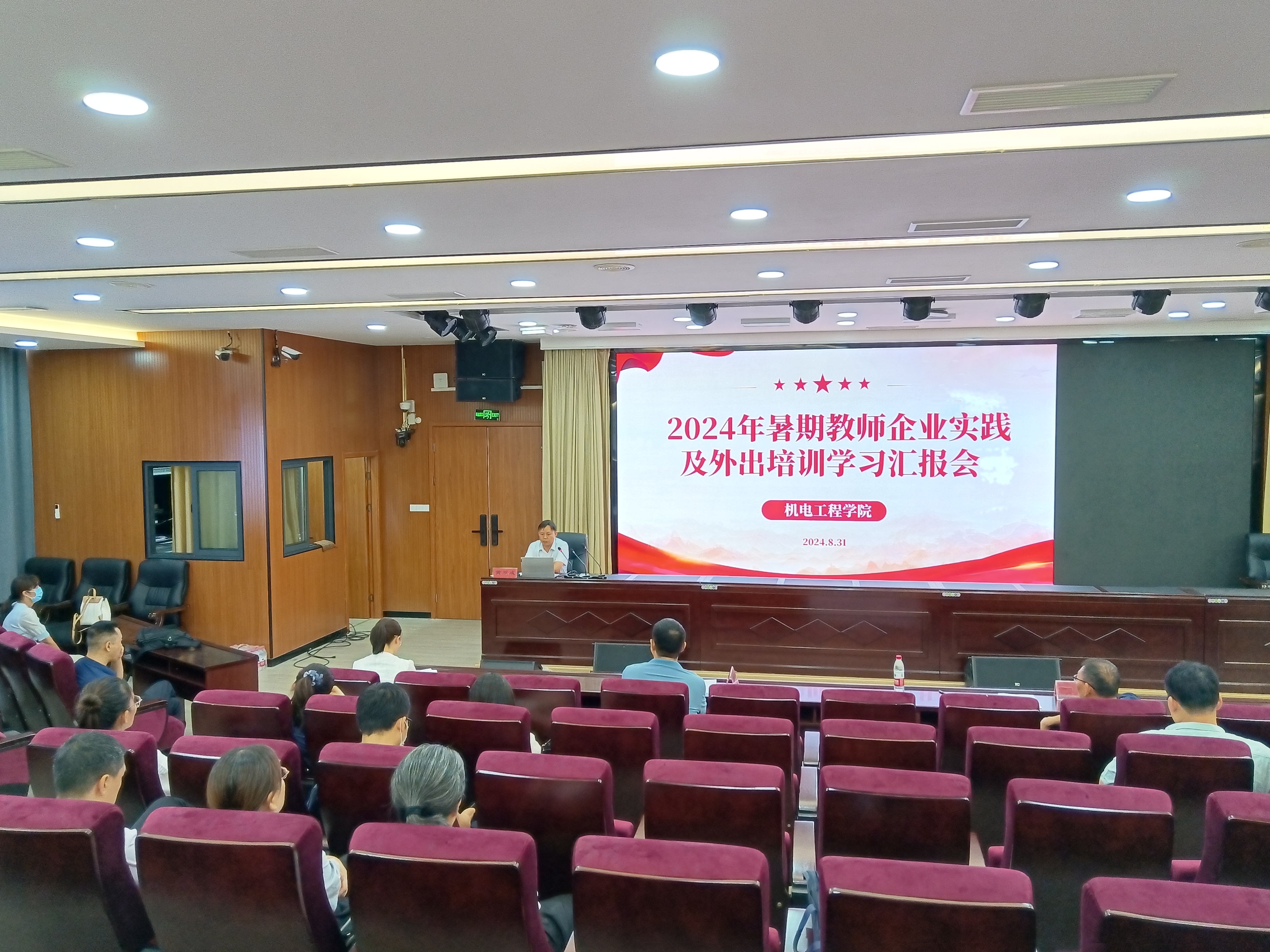 为总结教师企业实践成效,分享教师企业实践收获,进一步落实教育部等七部门印发的《职业学校教师企业实践规定》,规范教师进企业实践活动,提高教师专业发展水平,提升教师实践教学能力,全面推进pg娱乐电子游戏官网入口师资队伍专业化建设,8月31日上午,pg娱乐电子游戏官网入口在B楼学术报告厅举办2024年暑期教师企业实践及外出培训学习汇报会。教务处副处长付永,pg娱乐电子游戏官网入口院长黄双成、副院长李凤银及全体学院教师30余人参加汇报会,汇报会由李凤银主持。