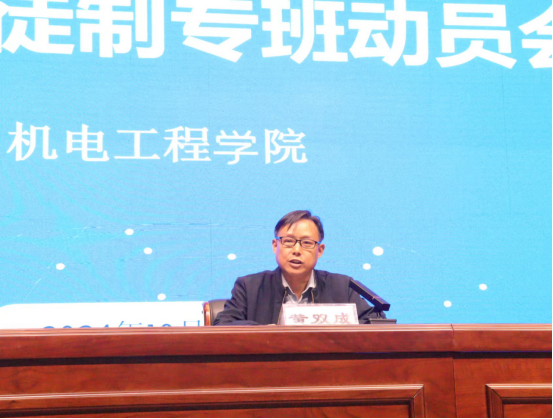 最后,黄双成对现代学徒制专班的培养模式、所获成绩做了深度介绍。他指出,现代学徒制专班是学院与企业合作的重要成果,秉持着“双主体育人、双导师教学、工学交替、岗位成长”的核心精神是学院人才培养模式改革的重要举措。学校提供系统的理论知识教育,为学生奠定坚实的专业基础;企业则发挥实践基地的优势,让学生在真实的工作环境中进行实践操作,提升他们的实际技能。同时,实行双导师制度,学校的教师负责传授理论知识,企业的导师则给予实践指导,两者相辅相成,共同助力学生的成长。他强调,学院将不断深化校企合作,加强与企业的沟通与交流,共同制定人才培养方案,共同组织教学和实践活动,共同评价学生的学习成绩和职业能力。他希望同学们能够积极参与现代学徒制专班的学习和实践活动,不断提高自己的职业素养和就业竞争力。