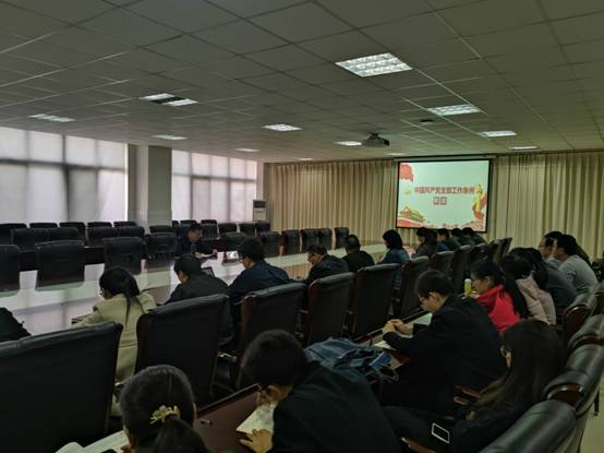 2019年10月15日,校长范晓伟以《中国共产党支部工作条例(试行)》为题,在实训中心E423会议室为pg娱乐电子游戏官网入口全体党员及教职工上了一堂“不忘初心、牢记使命”主题教育专题党课,会议由党总支副书记邓艳丽主持。
