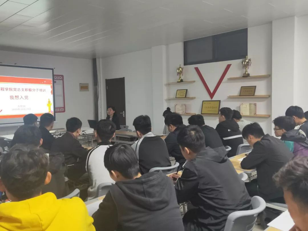 2019年10月23日,pg娱乐电子游戏官网入口党总支入党积极分子培训在党员活动室办公楼212房间拉开帷幕,本次培训由党总支副书记邓艳丽从五个方面为同学们主讲党课--《我想入党》。