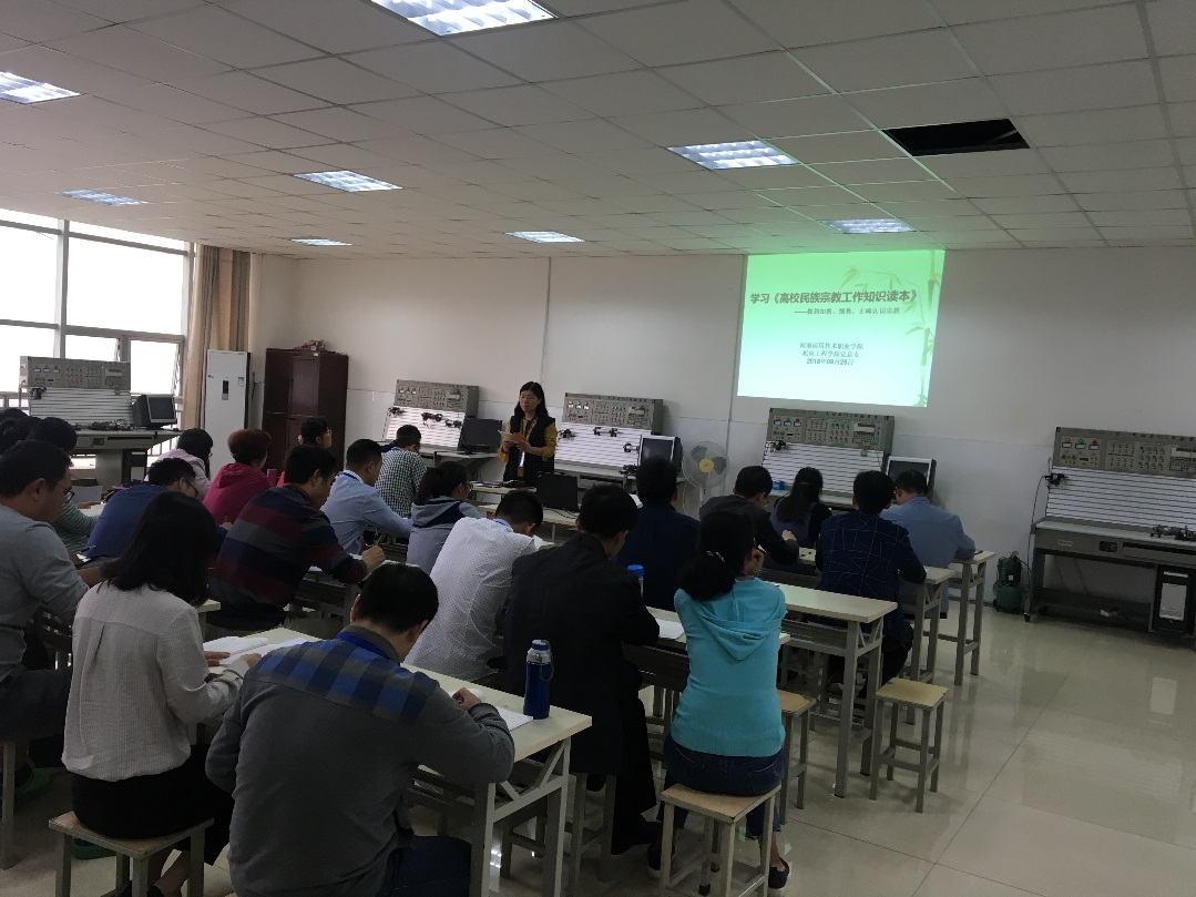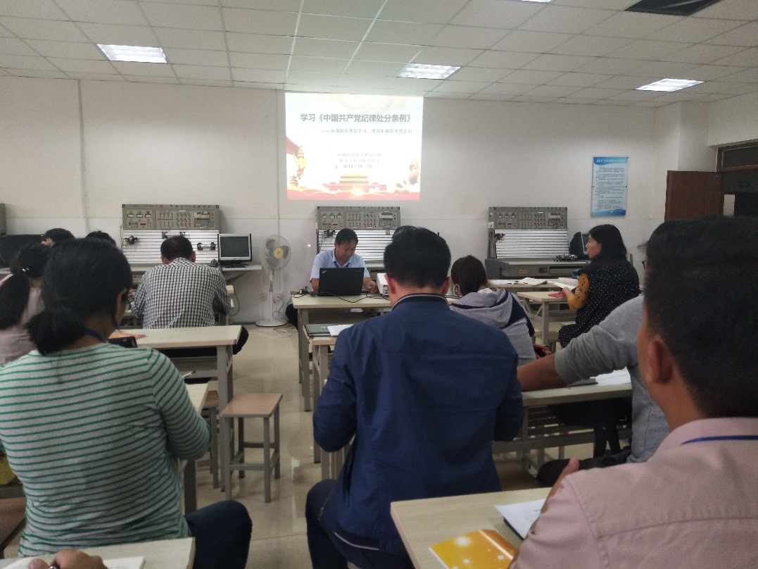 根据学校党委工作安排,2018年9月25日下午,pg娱乐电子游戏官网入口党总支组织全体教职工认真学习了《高校民族宗教工作知识读本》,组织全体党员原原本本学习了《中国共产党纪律处分条例》全文。学习共分两个阶段进行。