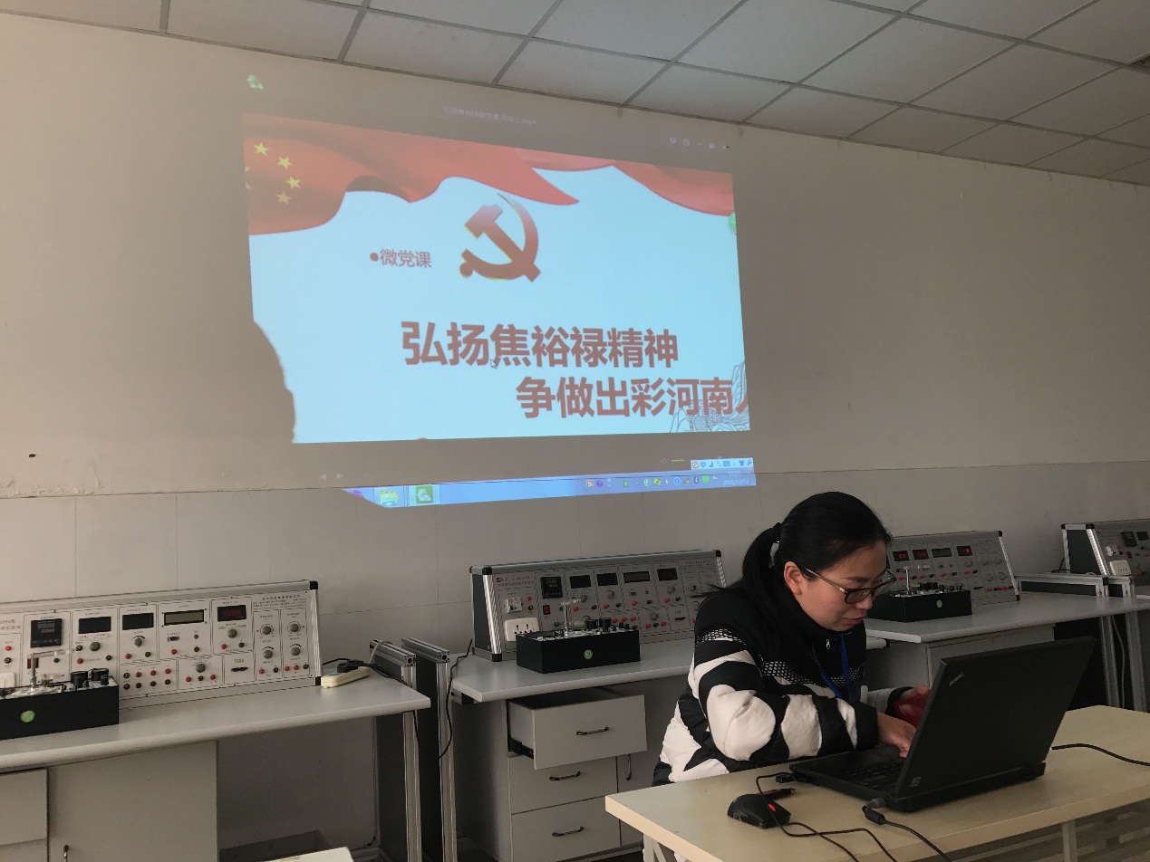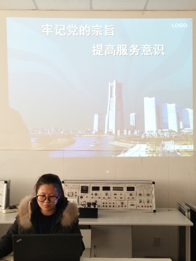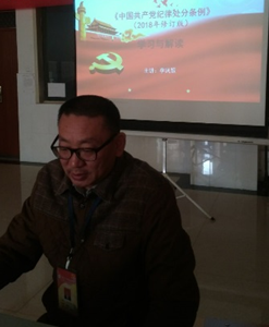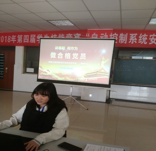 胡晓悦同志率先发言,她讲课的题目是《讲奉献有作为做合格党员》;接着仵征老师发言讲解。