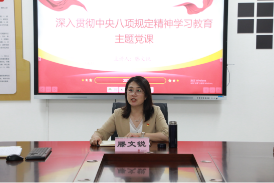滕文锐先后围绕中央八项规定精神如何改变中国、为什么开展学习教育、如何践行中央八项规定精神三个问题,分享了自己的心得和感悟,带领同志们进一步领悟了中央八项规定精神所带来的历史成就开展本次学习教育的重要意义。就后期的学习和实践,滕文锐提出三点要求,希望大家在学习上要远离“形式主义”,树牢政治自觉的“精气神”在工作中远离“官僚主义”,把稳为民服务的“风向标”生活中远离“奢靡之风”,戴好遵规守纪的“紧箍咒”