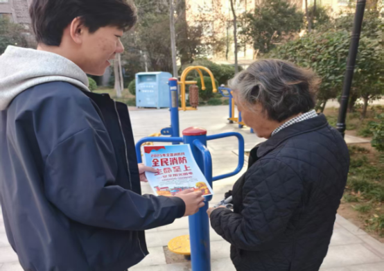 为积极响应“119消防宣传月”活动号召,深化“我为群众办实事”实践内涵,11月21日,pg娱乐电子游戏官网入口团总支书记郭娇娇组织师生志愿者走进凯旋社区,围绕“消防宣传入社区守万家,隐患排查治违规护平安”主题,开展消防安全宣传与隐患排查专项实践活动,切实提升社区居民消防安全意识,筑牢社区消防安全防线。
