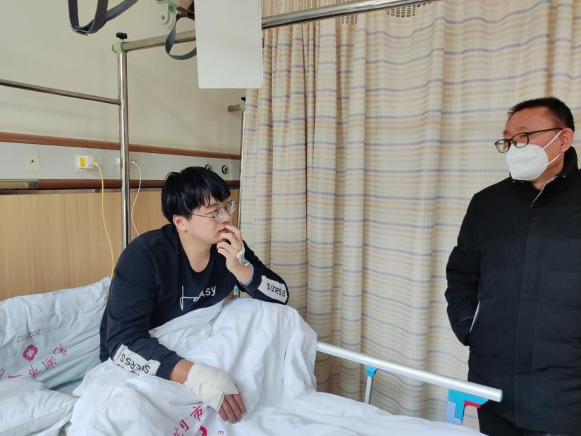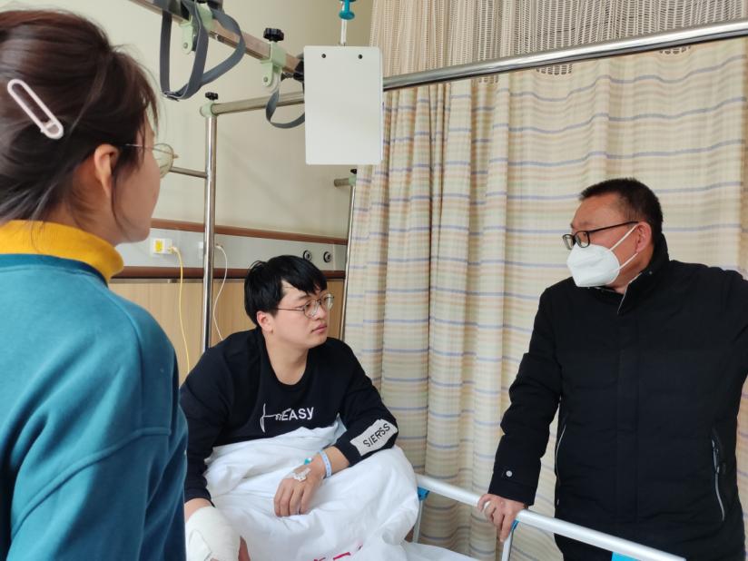 寒假期间,机电2002班学生遆梦贺在实习单位受伤,该生家庭特别困难,父亲外地打工,母亲在家照顾老人无法分身,一直是学校的重点资助对象,两次荣获国家励志奖学金。pg娱乐电子游戏官网入口书记张亮和院长黄双成接到实习老师和辅导员汇报后,紧急委派副院长李凤银和资助专员江丽梅赶往安徽芜湖探望受伤学生。通过了解学生情况,与学生姐姐充分交流,了解了学生及家长的需要,访后及时跟踪,将“关心、关爱“学生的工作做到“家”,着力推进资助育人的“实、细、长、深”,认真征求学生家长对学校资助育人工作的意见或建议勉励学生学会在逆境中成长,以优异成绩感恩父母、回报社会。