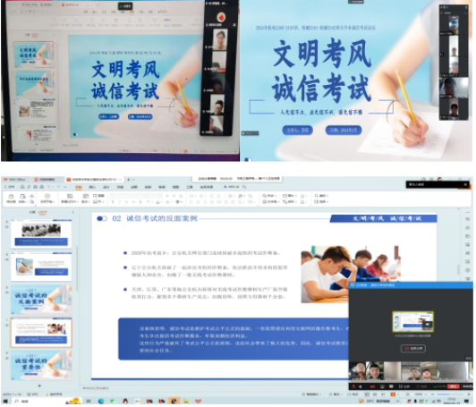 各班通过线上主题班会的形式,宣传诚信考试相关知识,明确了替考、组织作弊、帮助他人作弊等行为的严重后果,深刻领会诚信考试的重要性。这不仅增强了考生们的诚信意识,也为他们树立了正确的价值观和人生观,作弊不仅是对自己未来的不负责任,更是对他人和社会的不公平。