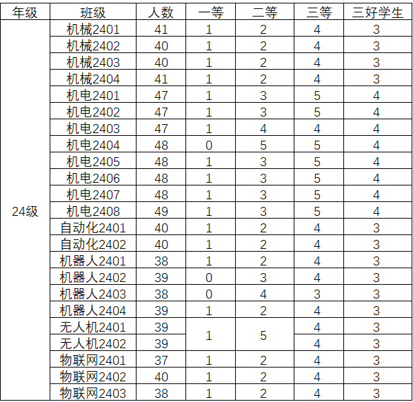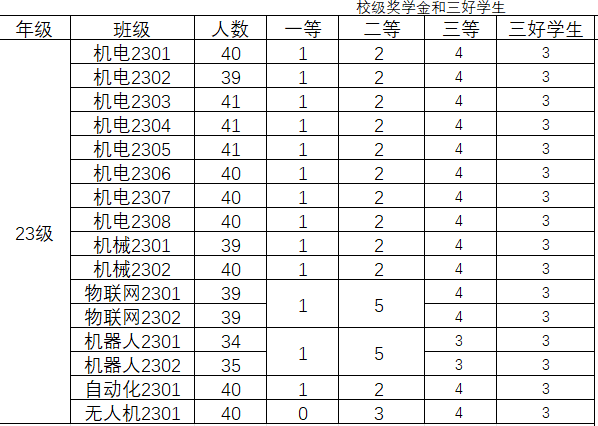 4.先进班集体:500元/班,不超过二级学院总班数的15%。