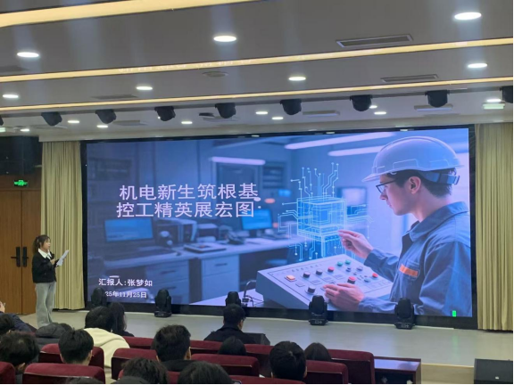 随后,11名参赛选手依次登台,将个人理想与专业特色、行业趋势深度融合。有的选手立足智能制造前沿领域,以清晰的技术路线规划勾勒出成为高素质技能人才的成长路径;有的聚焦基层岗位,用扎根一线、服务社会的初心诠释责任担当;有的着眼创新创业,结合市场需求展示青年一代的创新活力。选手们通过PPT讲解、情景模拟、视频展示等多元形式,将对职业的思考与对未来的憧憬娓娓道来,既展现了扎实的专业素养,也彰显了智能制造学子昂扬向上的精神风貌,现场掌声不断。