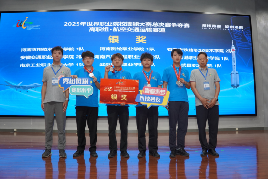 赛场上,团队面对来自全国各地的“技能尖兵”,沉着应对、稳扎稳打。在无人机应急救援模拟场景中,团队分工明确、配合默契,精准完成灾害区域三维建模、物资定点投送等高难度任务;在航空器智能运维赛段,选手们以毫米级的操作精度完成故障诊断与系统重构,展现了扎实的专业功底与卓越的创新能力凸显了“1+1>2”的强大团队合力。凭借稳定的发挥与出色的表现,团队赢得现场评委与行业专家的一致好评最终摘得银奖